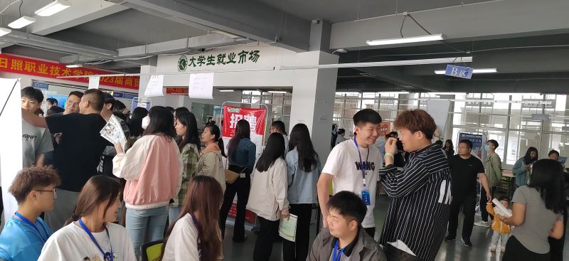 本次招聘会分商贸类、建筑工程类和会计类三个区域,共邀请了鲁南制药、临沂新程金锣肉制品集团有限公司、日照锦尚八月文化传媒有限公司、日照石头教育科技有限公司等30余家知名企业参加,日照本地企业占九成以上,共为学生提供就业岗位1200余个。招聘会上气氛活跃,前来问询的学生络绎不绝。企业招聘人员现场发放宣传资料,向学生介绍企业概况、招聘职位及薪资待遇等情况,耐心回答学生关于工作岗位的各种问题;学生也对有意向的岗位投放个人简历,与招聘企业深入交流,主动了解岗位信息。会场气氛热烈,据不完全统计企业现场共收到简历300余份,达成初步就业意向120余人次。