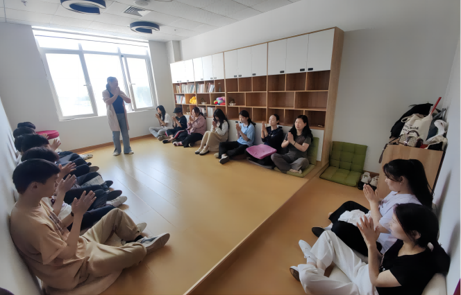 杨霞讲述了催眠的科学依据、催眠减压的各种作用,并指导师生们开展心理游戏,在游戏中充分感受身体的变化。杨霞指导师生们采用腹式呼吸法,带领师生们体验全身心放松的睡眠状态。伴着杨霞轻柔的声音,跟随着“慢慢地使你的身体放松…放松…放松…”的口令,师生们的潜意识仿佛被调动起来,慢慢地开始昏昏欲睡,达到了身心平和、宁静、舒畅的状态。催眠体验结束后,师生们纷纷表达了自己的感受,“感觉不到我的手了”“自己好像去了一片草地”“感觉双脚十分放松”。最后,杨霞与师生们探讨活动感受,师生们积极发言并提出问题,杨霞进行了一一解答。
