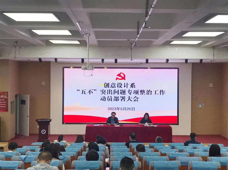 为深入贯彻中央和省委、市委关于加强作风建设部署,根据市纪委和学校党委的工作要求,进一步推动干部职工作风建设走深走实,5月25日,创意设计系在地滋楼A区二楼报告厅召开创意设计系“五不”突出问题专项整治工作动员部署大会。会议由创意设计系主任张永宾主持,党总支副书记张云丽及全体党员和无课教师参加会议。