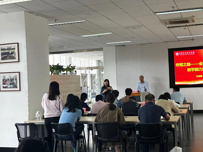 在互动交流环节,老师们积极提问,就教案设计、教学实施报告、录课、答辩等具体流程与王谷娜进行深度交流。老师们纷纷表示,通过聆听王老师的报告,对教学能力比赛有了更加清晰的认识,对参赛准备、团队组建、材料准备等方面有了全新的理解,对今后参加教学能力比赛提供了有益指导。