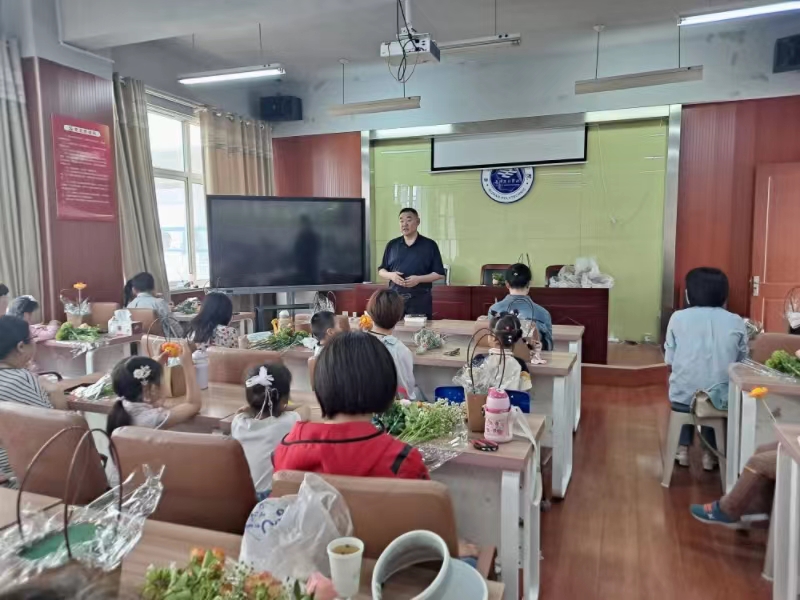 活动开始,花艺协会负责人梁芳首先向大家讲解了相应花朵的花语、花期及如何保鲜等小知识。然后向小朋友们讲解一花一草均有生命,倡导小朋友们爱护花木,珍惜生命。随后,指导教师教给每位小朋友如何插花,怎样才能将花插出美感。现场洋溢着欢快的笑容,每位小朋友插花时的认真与专注也感染了每位家长。花香溢满屋,笑声阵阵响,老师们和孩子们沉浸在鲜花和笑声的海洋里。