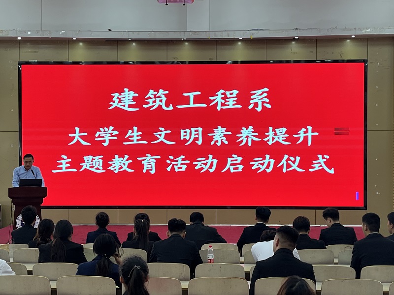 为进一步加强学生文明习惯养成,规范建工学子的日常行为,提升文明素养,推动师生形成适应新时代要求的思想观念、精神面貌、文明风尚、行为规范,建筑工程系于6月3日下午在海润楼二楼报告厅举办大学生文明素养提升主题教育实践活动启动仪式。系党总支副书记乔梓、学生代表参加活动,活动由学工科科长毛风华主持。