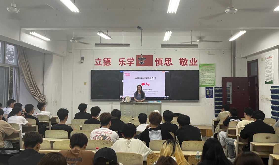 随后,2022级建筑工程技术(中外合作)5班、6班全体同学参加中加合作办学项目学生见面会。会上,张冰冰详细介绍了日照职业技术学院-加拿大罗耶斯特文理学院合作办学项目情况。她就加拿大国家概况、罗耶斯特文理学院简介及本项目独特优势进行讲解,展示了学院的校园环境、学生生活及加方毕业文凭样本等细节。