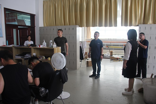 雨虹学院来访主要商讨关于大师工作室筹建及课程设置相关事宜,杨志刚陪同客人参观了建筑工程系实训室,并就实训基地、师资共享、人才培育等方面进行了深入的沟通与交流。