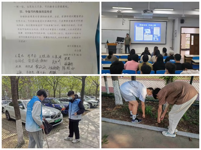 网络文明我先行。遵守网络道德,倡导网络文明。利用主题班会、专题讲座等,号召大家诚信上网、文明上网,不造谣、不信谣、不传谣。加强氛围宣传,设计绘制海报,倡导学生争做网络文明传播志愿者,争做中国好网民,共建清朗网络空间。