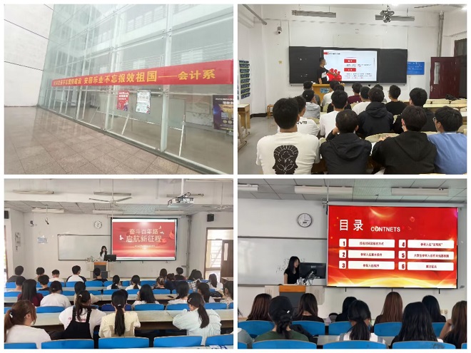 为响应党和国家增强国防力量的号召,为做好2023年度大学生征兵工作,扩大征兵宣传的影响力和辐射面,进一步激发我校学生携笔从戎,参军报国的热情,会计系在5月份组织召开了一系列征兵宣传活动。本次征兵宣传活动主要包括主题宣讲,征兵主题班会,悬挂宣传标语等等。