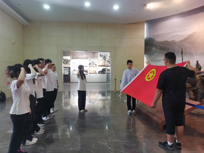 参观结束,海洋技术系在现场举行新发展团员入团宣誓仪式。学生会主席廖雨轩同新团员们面向鲜红的团旗,举起右拳进行庄严宣誓。誓词铿锵,情感真切。提醒在场的每一位同学牢记团员使命,不忘入团初心。