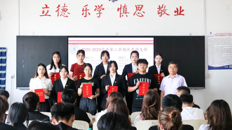 为深入学习贯彻习近平新时代中国特色社会主义思想,表扬先进、树立典型,持续推进我系共青团工作不断改革创新,勇毅前行。6月21日下午,商学系团总支在海润楼S304举办2023年度春季学期共青团工作表扬大会,商学系党总支副书记李运昌、团总支书记范伟军、受表扬的集体和个人、团员代表参会。