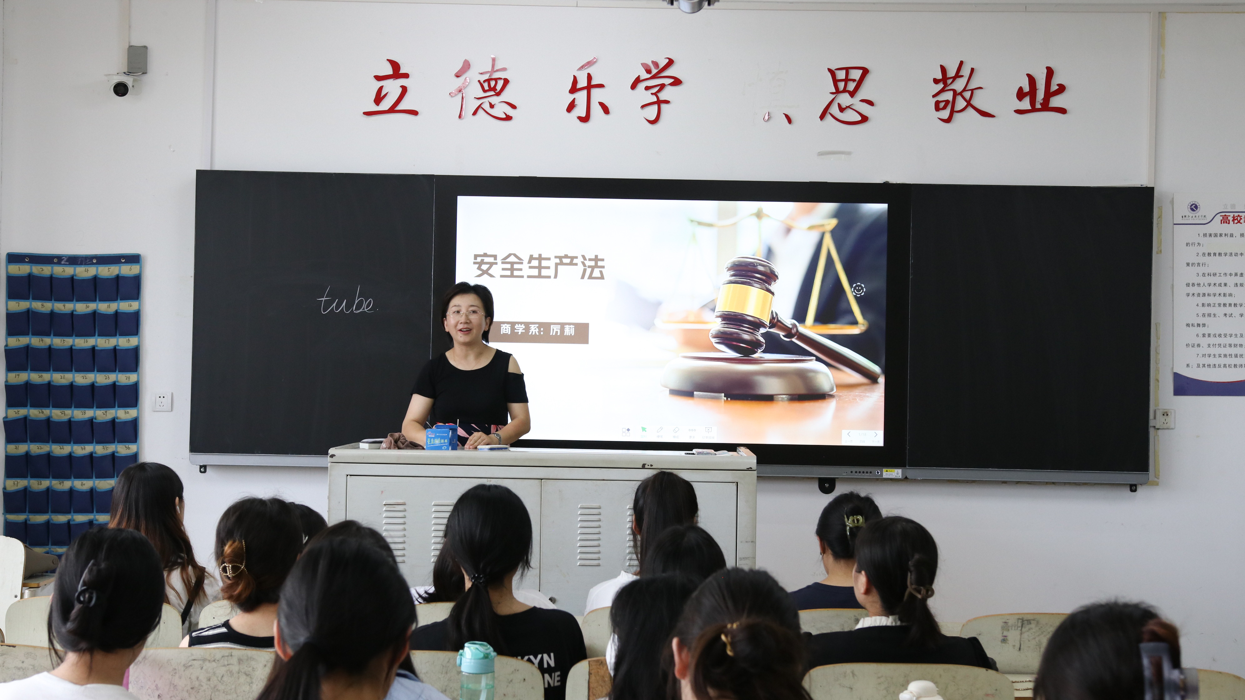 为进一步加强平安校园建设,增强学生安全法治意识,保障学生人身财产安全,促进学生健康成长,6月29日,学校法律顾问成员、商学系专任教师厉莉在海润楼S306教室为商学系学生开展《安全生产法》专题普法讲座。