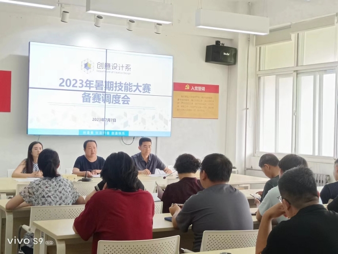 7月7日上午,创意设计系在地滋楼A219会议室召开了2023年暑假技能大赛备赛调度会。会议由副主任李德华主持,教学科科长杜鹃、学工科科长周杨、各赛项指导教师和备赛学生参加。
