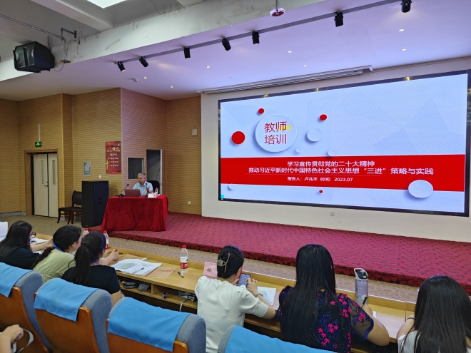 开班仪式后,卢兆丰作了题为《学习贯彻党的二十大精神,推动习近平新时代中国特色社会主义思想“三进”策略与实践》的专题报告,从我们的任务、理论武装、课程设计策略、教学实施策略四个方面系统梳理了教师教学过程中应如何更有效率的融入课程思政,提出了“小切口典型融合策略”,运用多种案例,指出课程思政应“融入伦理、融入精神、融入价值、融入导向”,真正做到让课程思政体现出专业性、时代性。