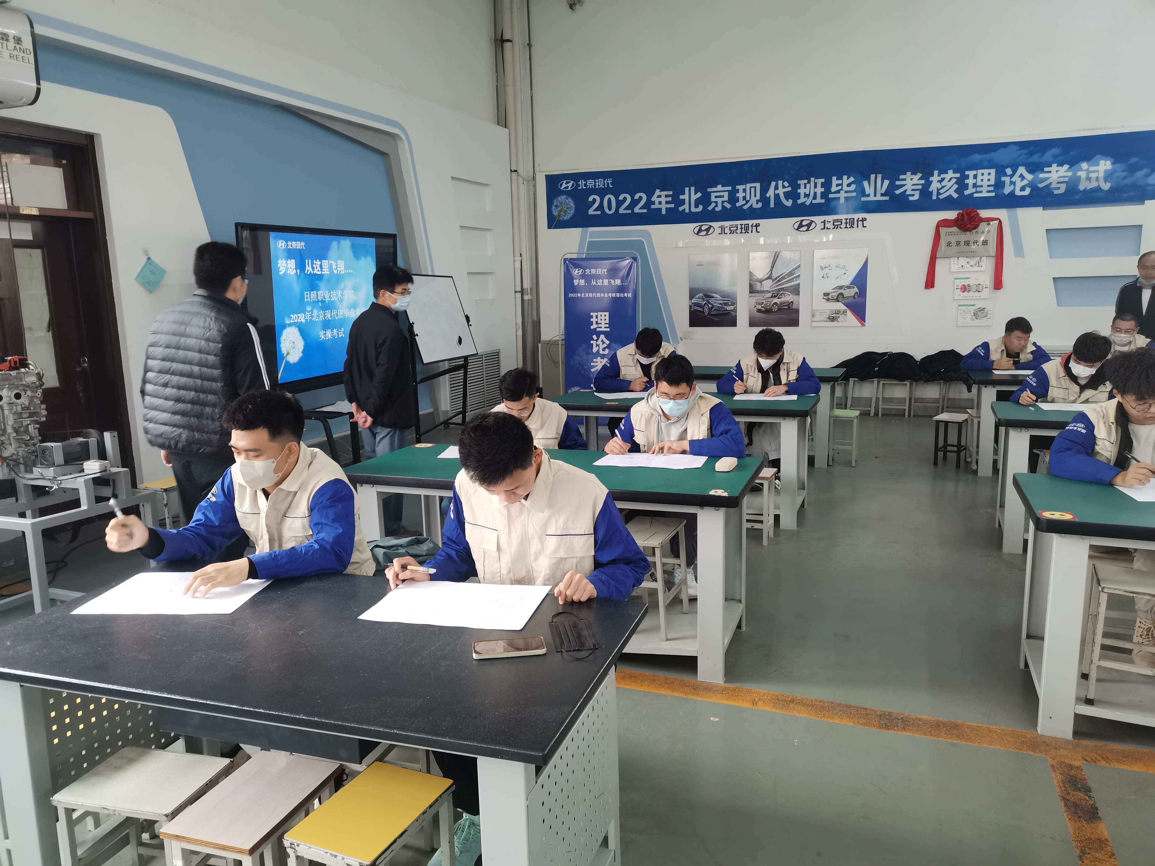 “北京现代班”项目是北京现代汽车有限公司与国内优秀职业院校合作共育职教人才的先进职教项目。现代汽车系一直高度重视与知名车企开展合作,自2021年与北京现代汽车有限公司开展合作以来,项目组密切对接企业需求,制定特色专业人才培养方案,开发专业课程资源,融合创新教学模式,提高项目品牌含金量,也进一步提升学生的就业质量,实现了系部、学生和企业的三方共赢。截至目前,已有3名教师获得了北京现代班核心教师认证体系“机电维修”“新能源汽车”核心师资认证。先后组建了2020级、2021级两级“北京现代班”。北京现代公司先后两次为学校捐赠教学发动机和变速器等一批教学设备,价值总额80余万元。经过一年的努力学习与刻苦训练,首届北京现代班16名学员专业知识和技能水平得到大幅提升,经过考核,全部顺利通过考试,成功获取北京现代颁发初级“机电技师”资质证书。
