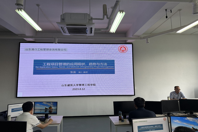 8月12日,建筑工程系建设工程管理专业暑期教师工作坊暨山东港口工程管理咨询有限公司“元融班”第二课开讲。山东建筑大学管理工程学院张雷教授受邀前来讲学。开班仪式由山东省高等学校智能建造新技术研发中心管理办公室主任胡伟主持。建设工程管理教研室主任谭婧婧副教授、相关专任教师和山东港口工程管理咨询有限公司全体学员40余人参加活动。
