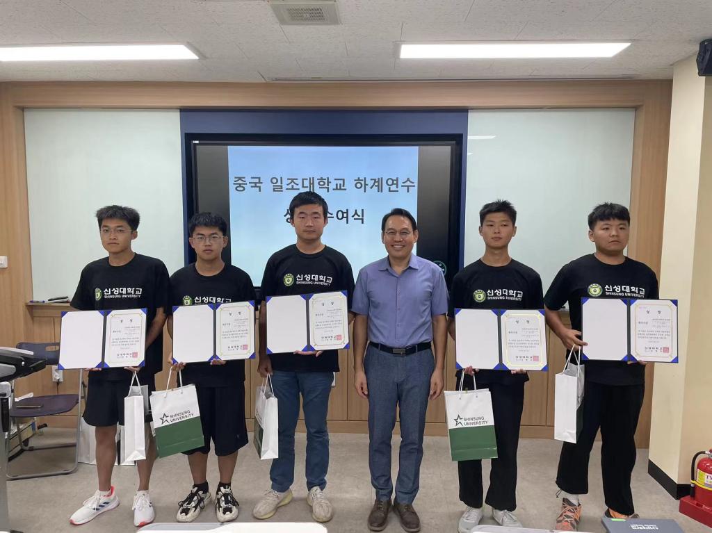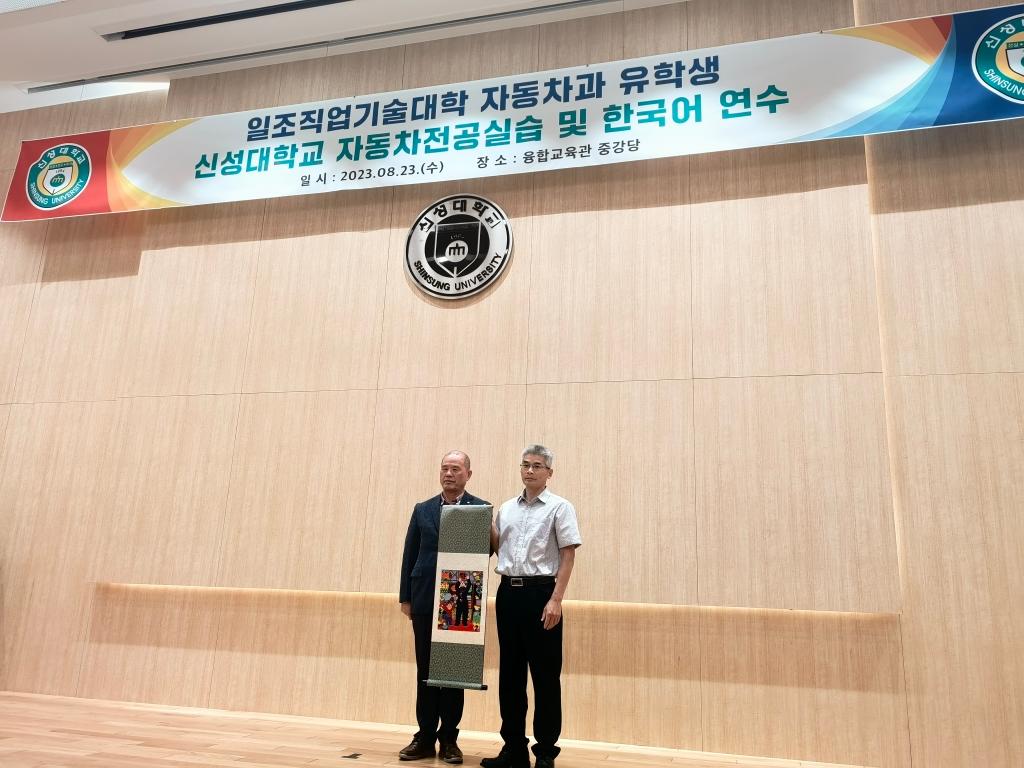 8月23日下午,在完成韩国语基础教学最后一次课后,在新星大学融合馆一楼礼堂,举行了隆重的研训结业仪式。新星大学副校长刘永昶,汽车系主任高在洙与文仁贵、刘昌倍教授,国际交流院课长赵圣哲、朴素妍,韩语教师金恩熙、李凡灿,我校汽车系副主任李维营,汽修教研室主任冯德军、张婕,国际教育系科长梁鑫,全体参训学生参加了结业仪式。刘永昶为参训教师和全体学生颁发了结业证书,并发表了热情的讲话,他指出,新星大学与日照职业技术学院建立校际合作关系已有15个年头,期间合作务实愉快,建立了良好的基础,下一步两校间将继续加强交流与合作,共同推进国际合作办学走深走实,结出丰硕成果。随后,刘永昶和李维营代表两校互赠礼物,寄寓两校间的合作再上新台阶。结业仪式后,与会师生共同合影留念。