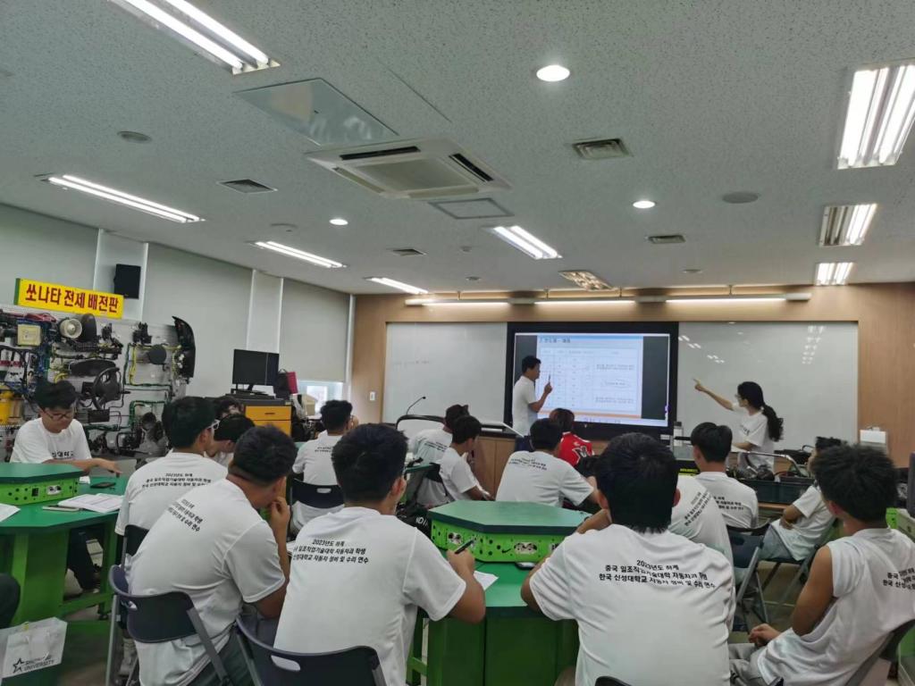 研训期间,新星大学汽车系资深教授罗完龙、高在洙、刘昌倍、文仁贵为学生开展了自动变速器、双离合及无极变速器、汽车电工电子、汽车电气系统故障排除、汽车涂装、发动机零部件测量及性能检测等模块的实训教学,赵顺仁、安耐妍等六位韩语教师分A、B班,为学生开展了韩国语基础教学。同学们在整个研训期间,严守校规校纪和外事纪律,统一组织行动、服从带队教师安排,表现出良好的素养;课堂上学习认真、态度端正,积极参与实训教学活动,专业知识技能取得较大提升;课余积极参加篮球、足球、羽毛球、健身等运动,并与国外学生共同开展了足球友谊赛活动,展现出良好的精神风貌。