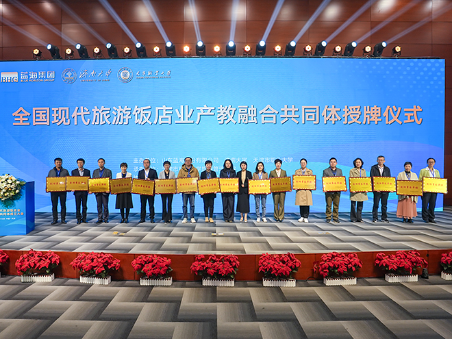 全国现代旅游酒店业产教融合共同体是由山东蓝海集团、济南大学、天津市职业大学牵头,行业组织、高校、科研机构和企业等120余家单位参与,旨在推动各方整合资源优势,促进产业链、创新链和教育链、人才链深度融合,致力于旅游饭店业创新型人才培养的组织。