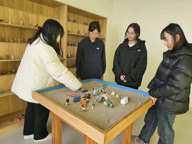 通用航空系心理辅导员代艳为同学们介绍心理中心的职能、心理咨询的预约流程及保密原则、心理健康教育活动的开展情况。依次参观了预约等候室、个体咨询室、沙盘室、音乐放松室、正念训练室、情绪辅导室、团体辅导室等,为同学们详细讲解了每个房间的使用功能。参观后,同学们纷纷表示通过此次活动,进一步掌握了自我心理调节方法,了解心理求助途径。