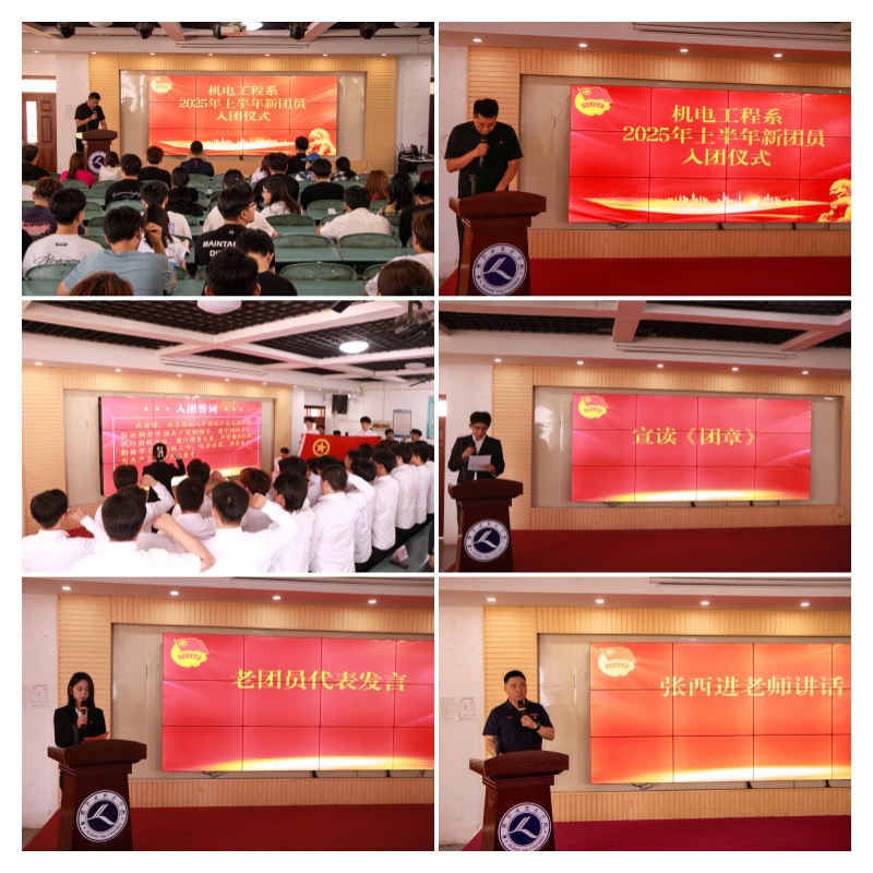 6月3日下午,机电工程系在山润楼319报告厅举行2025年上半年入团仪式。仪式由学生科(团总支)辅导员王业辉主持,系团总支书记张西进与新发展团员、老团员代表和各班学生代表共计150余人参加。