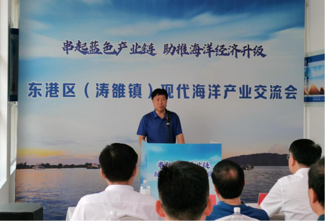 揭牌仪式后,召开东港区(涛雒镇)现代海洋产业发展交流会。海洋技术系党支部委员宋维彦分享了水产养殖技术专业建设、人才培养以及开展技术服务、社会培训等方面做法与经验,与沿海村支部书记代表、水产养殖企业代表、育苗企业代表共同探讨“蓝色经济”发展方向。