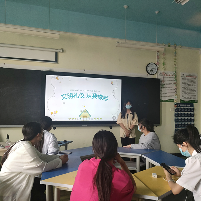 本次活动以多种形式进行,首先组织各班级召开了主题班会,讨论了讲文明讲礼仪的重要性和必要性。由2020级入党积极分子组成的“文明风尚倡导小组”,充分利用课余时间对学生的穿着形象和不文明行为进行正确引导,系学生会成员在此期间密切配合并积极呼吁全体学生参与其中。