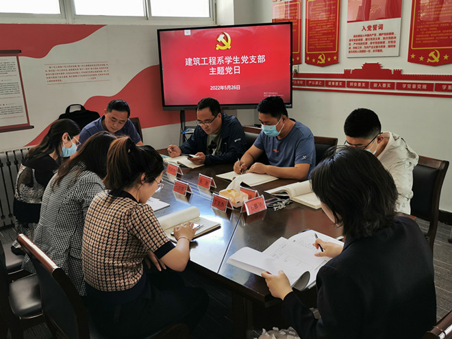 5月26日下午,建筑工程系学生党支部在海润楼M101开展五月份第二次主题党日活动,会议由学生党支部书记乔梓主持,全体党员教师参加会议。
