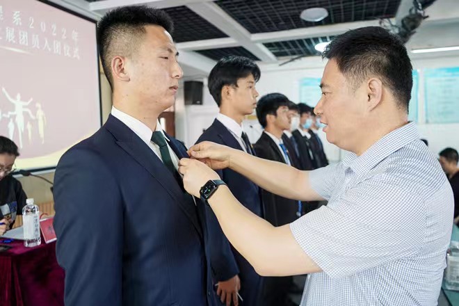 为庆祝建团100周年,加强共青团队伍建设,激励青年坚定理想信念,绽放青春力量,勇担时代责任,5月26日下午,机电工程系在山润楼319举行2022年上半年新发展团员入团仪式。系团总支书记张西进,团总支全体老师以及团员代表参加仪式。