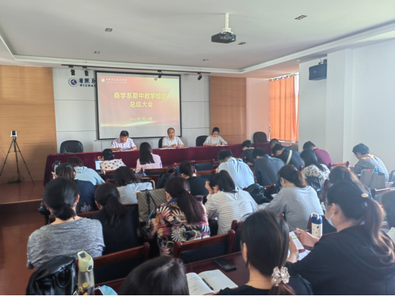 为加强教学管理,及时发现、解决教学中存在的问题,总结和推广教学经验,建设良好的教风和学风,商学系于第13周集中开展期中教学检查,并于5月24日在海润楼N302召开期中教学检查反馈会。会议由党总支书记牟宗国主持,党总支副书记李运昌、副主任申作兰及全体教师参加。