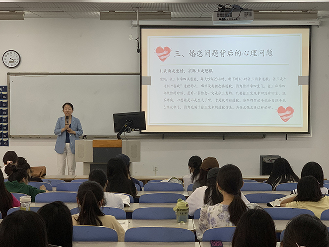 本次讲座将心理学理论与个人经历、社会热点及临床案例相结合,提高了同学们的恋爱安全意识,让同学们对婚恋观有了正确的认知与理解,并在轻松、愉悦的氛围中获得了对自己、对生活更多的感悟与思考。(人文与旅游系 牛清艳)