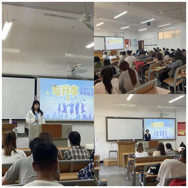 张斯荷针对最新的专升本形势进行政策解读并分析了未来可能的改革方向,为大家拨清迷雾,指引道路,指导大家对未来的学习计划与努力做好规划。王裕玉讲述了自己从日职的毕业生到博士后的求学经历,以切身体会鼓舞青年学生们提升自我,勇于挑战,不要在大学得过且过,要抓住专升本的机会,让人生更上一个台阶。三位已完成升本考试的同学为大家详细介绍了升本建议与注意事项,分享了备考心得、学习干货,对同学们重点关注的问题进行了一一解答。