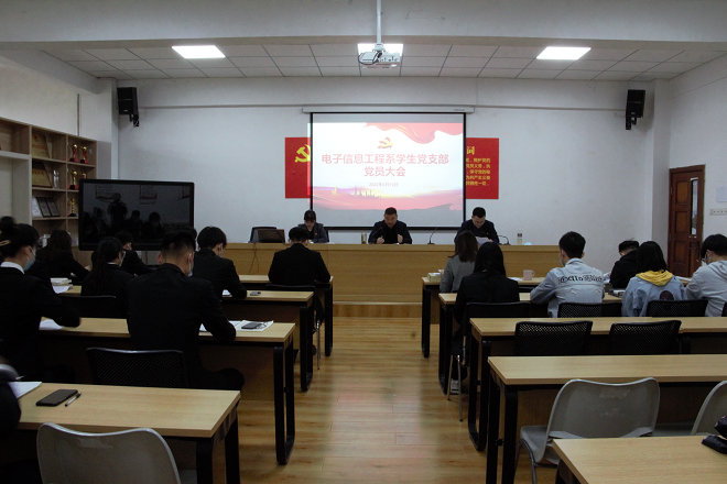 5月10日上午,电子信息工程系学生党支部在地滋楼A421会议室召开支部党员大会,讨论预备党员张超等17名同志转正事宜。会议由支部书记田锋主持,支部班子成员、党员及部分学生预备党员参加。