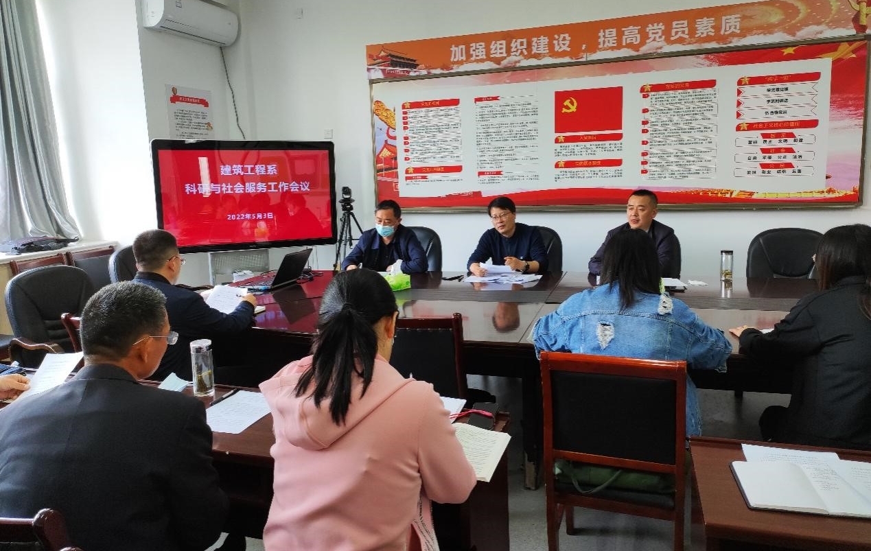 5月3日下午,建筑工程系召开科研与社会服务工作会议,建筑工程系主任徐锡权、党总支副书记乔梓、各教研室主任、副主任以及相关教师参会。会议由建筑工程系副主任杨志刚主持。