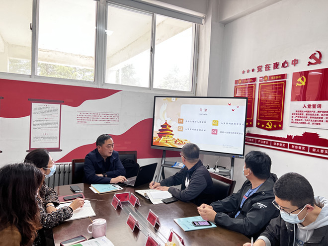 会议首先由毛风华带领重温入党誓词,接着开展第一议题的学习,学习习近平总书记到中国人民大学考察调研,勉励青年学子《在青春的赛道上奋力奔跑》。习近平总书记对全国广大青年提出殷切希望,牢记党的教诲,立志民族复兴,不负韶华,不负时代,不负人民,在青春的赛道上奋力奔跑,争取跑出当代青年的最好成绩!