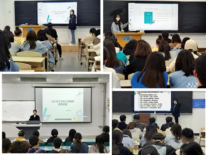 4月28日-29日,会计系举办大学生心理健康知识讲座。讲座旨在缓解大学生因疫情等问题而产生的焦虑抑郁情绪,引导大学生理性对待焦虑、正确进行自我认知,从而更好地进行学习和生活,实现个人全面成长成才。主讲人为各班级心理委员。