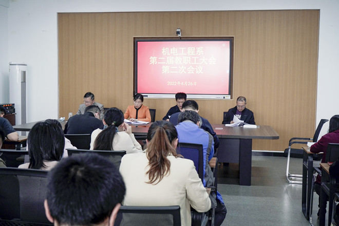 4月26日下午,机电工程系第二届教职工代表大会第二次会议在山润楼423会议室召开。机电工程系班子成员以及全体教职工参加会议,会议由机电工程系党总支副书记兼分工会主席成元学主持。