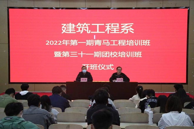 为迎接党的二十大胜利召开,庆祝共青团成立100周年,落实我系优秀青年马克思主义者培养工作,建筑工程系于4月18日在海润楼二楼报告厅举行了2022年第一期青马工程培训班暨第三十一期团校培训班开班仪式,党总支副书记乔梓、团总支书记毛风华出席会议,2020级入党积极分子、2020级、2021级班长团支书、学生会干部参与此次培训。