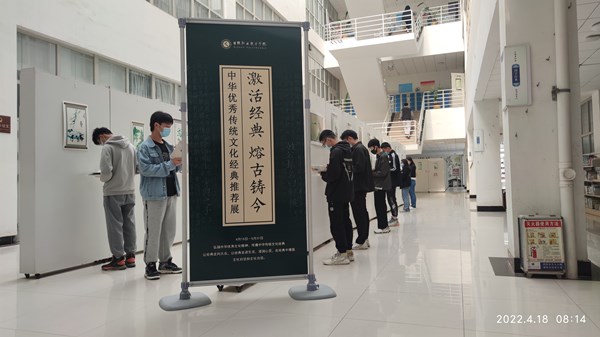 图书馆本次“激活经典 熔古铸今”中华优秀传统文化经典推荐展将持续一个月的时间,旨在引领广大学子知经典、学经典、诵经典,感受经典带来的精神力量,让经典走进生活,浸润心灵,扎实推进书香校园文化建设。(图书馆 陈红星)