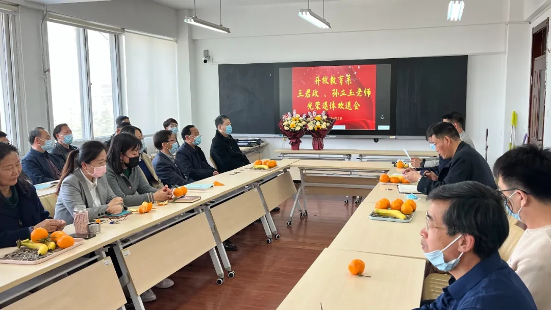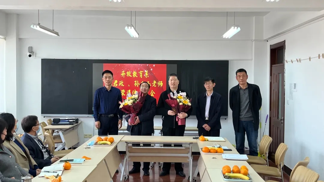 4月7日下午,开放教育系全体教职工欢聚一堂,以最真挚的情谊欢送王君政、孙立玉两位教师光荣退休。座谈会由开放教育系党总支书记安佰峰主持。