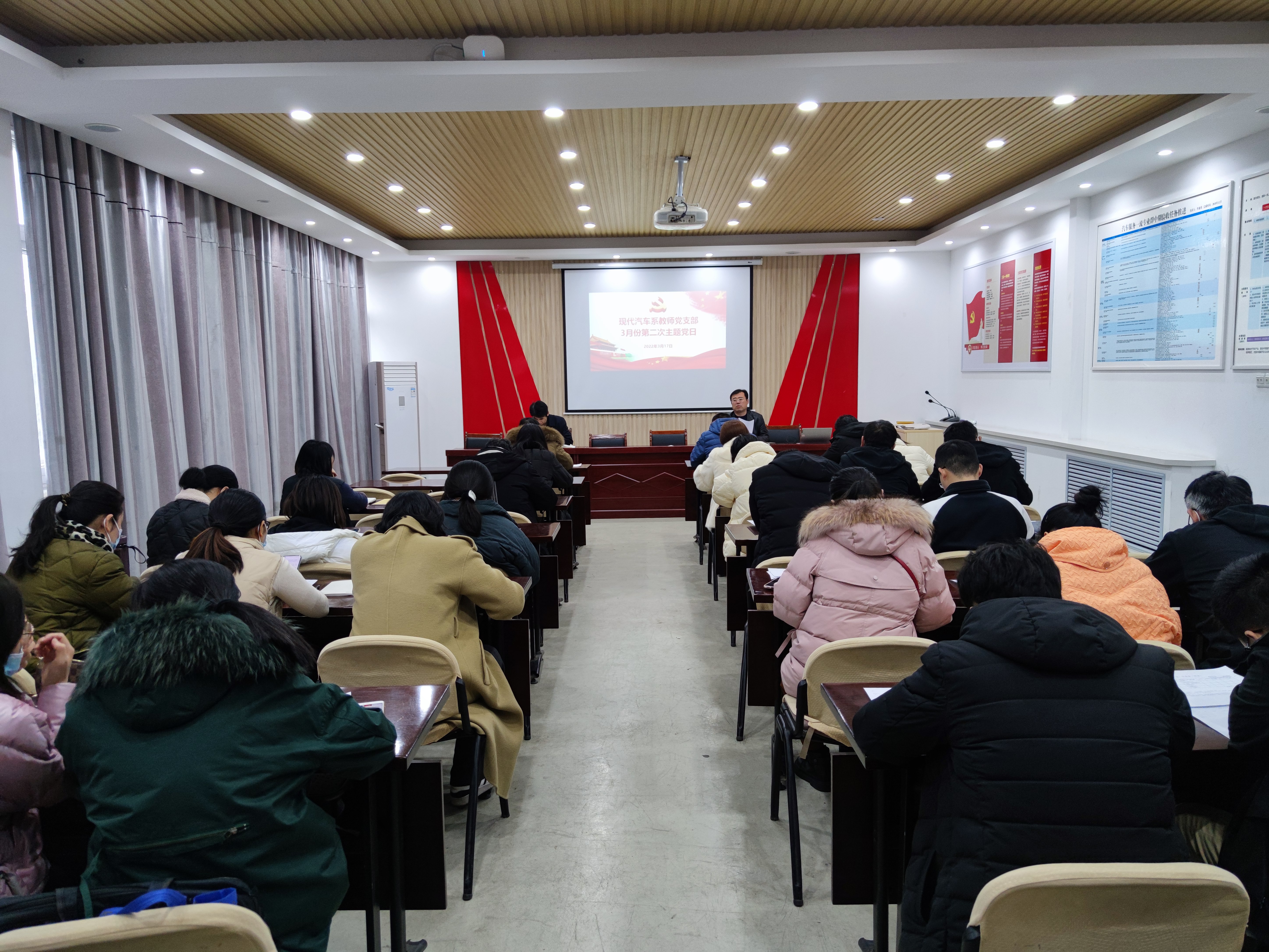3月17日下午,现代汽车系在山润楼二楼会议室组织开展3月份第二次主题党日活动。党总支副书记庄岩主持活动,全体党员与会。