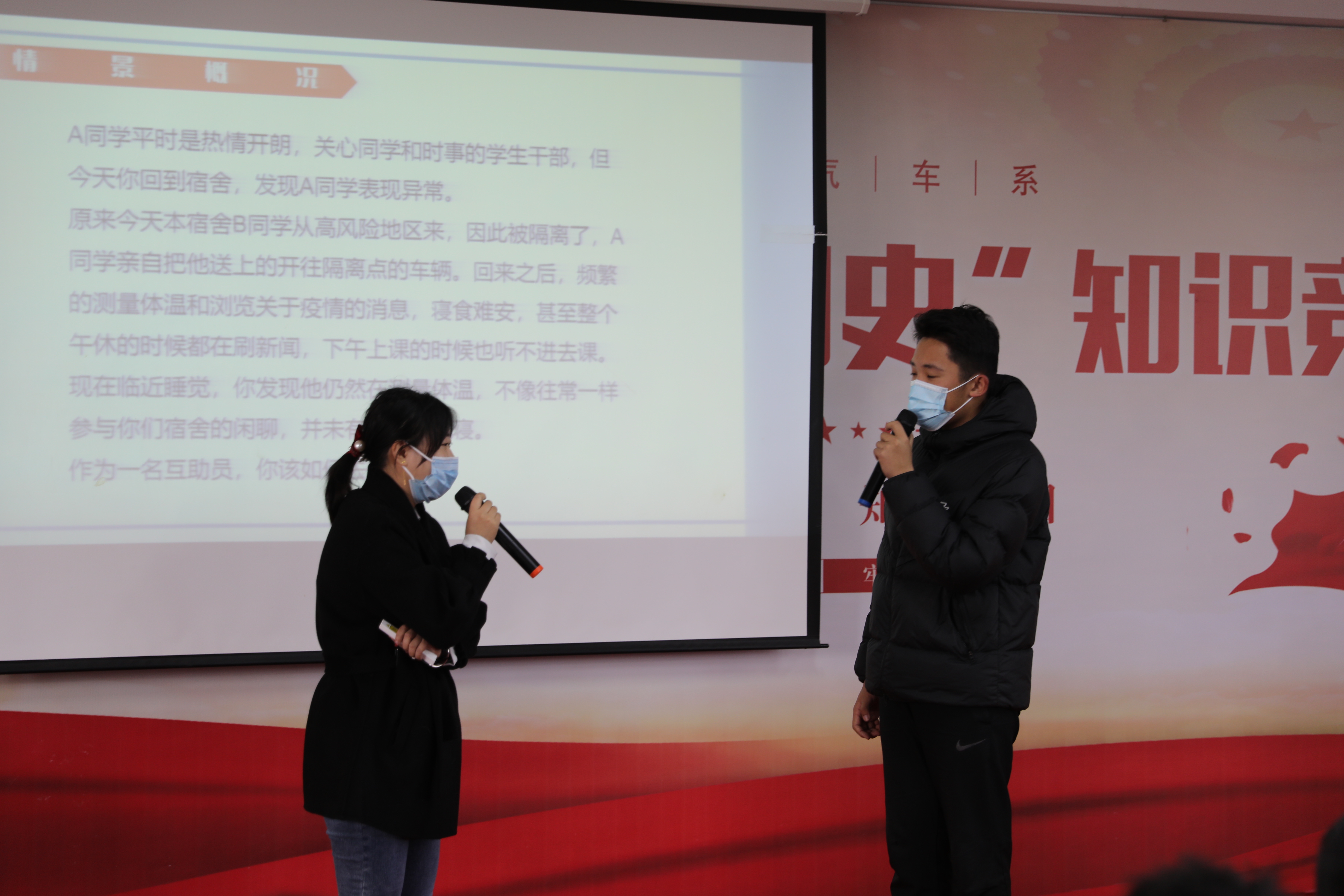 为贯彻落实《日照职业技术学院疫情形势下心理健康教育工作方案》等文件精神,进一步加强高校心理健康工作及疫情防控下心理危机识别和干预能力体系建设,现代汽车系于3月21中午在山润楼219教室举办“疫情背景下学生心理危机识别和干预能力”专题培训。培训由辅导员李雪颖主讲,各班级朋辈心理互助员、班团干部,学生会全体成员参加培训,系党总支副书记庄岩、全体辅导员与会。