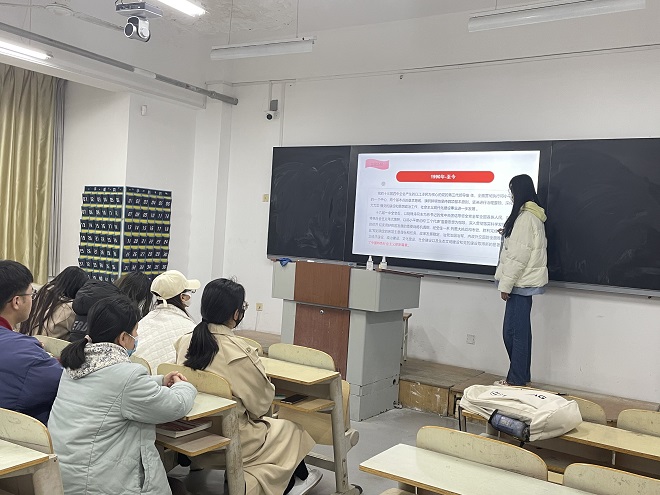 本次团课由各团支部为单位开展,团支部书记就习近平新时代中国特色社会主义思想与党的十九届六中全会精神、团史团情、《中国共产主义青年团章程》以及寒假返乡调研、暑期“三下乡”等社会实践成果展开讲解,进一步明确共青团政治定位和共青团员政治责任。2020级财务管理1班团支书以播放歌曲《一起向未来》的全新MV激励广大青年团员应当勇立潮头、奋勇搏击,并结合自己寒暑假的社会实践经验呼吁团员青年应树立新的目标;2020级会计8班团支书的团课内容是做好职业规划,无论是在学习还是生活中,都要以只争朝夕的精神,一如既往的准备着、努力着、拼搏着,彰显青年团员的朝气、志气和勇气。