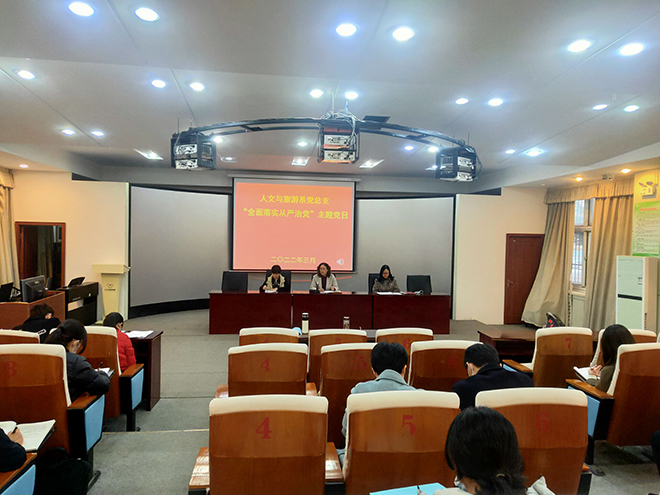 为传达落实学校“全面从严治党”会议精神,不断压实主体责任,深入推进全面从严治党,3月10日下午,人文与旅游系党总支在和润楼一楼报告厅开展题为“落实全面从严治党”主题党日活动。活动由系党总支副书记陈玉香主持,系党总支班子成员和全体党员教师参加会议。