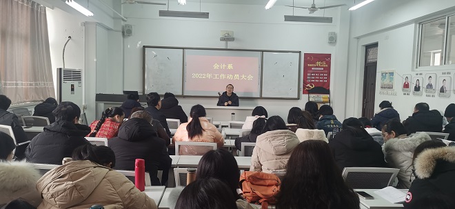 一年之计在于春,为确保会计系2022年度各项工作有计划、有目标的顺利开展,2月19日上午,会计系在海润楼S404会议室召开2022年工作动员会,会议由党总支书记訾波主持,全体教职工参加会议。