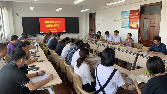 9月30日下午,开放教育系在学术交流中心A区416室组织开展解放思想大讨论集体研讨交流学习活动,全体教职工参加。