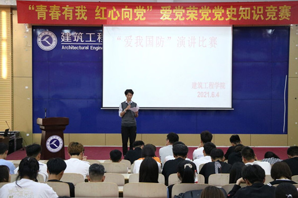 为进一步强化学生国防教育,激发大学生关心国防、热爱国防、建设国防、保卫国防的爱国热情,建筑工程学院以中国共产党成立100周年为契机,于6月4日举办“学百年党史,建强大国防”主题演讲比赛。