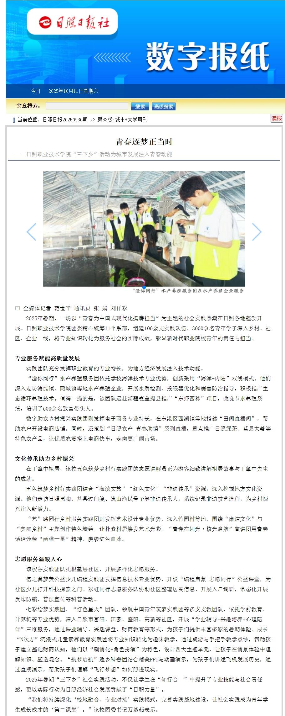 日照日报报道:青春逐梦正当时——日照职业技术学院“三下乡”活动为城市发展注入青春动能