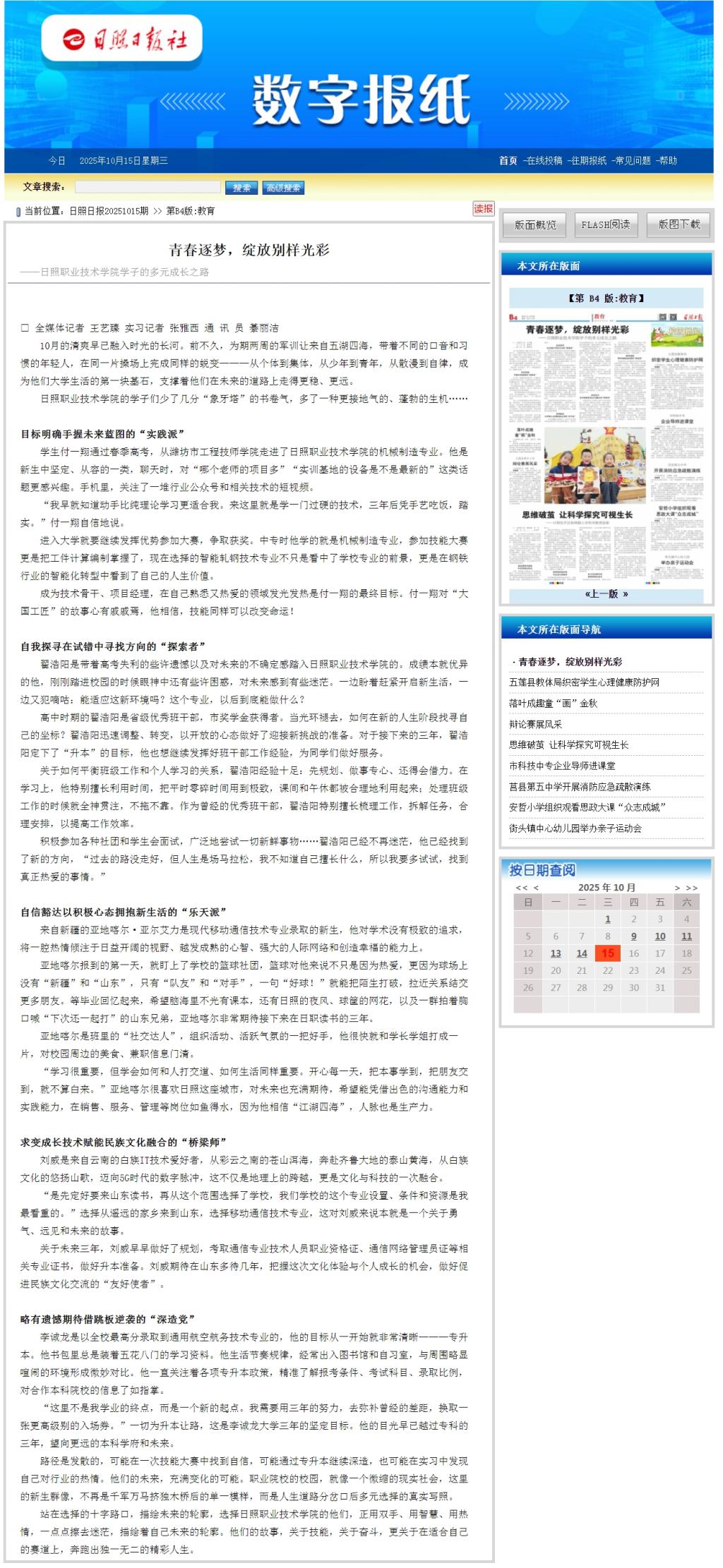 日照日报报道:青春逐梦,绽放别样光彩——日照职业技术学院学子的多元成长之路