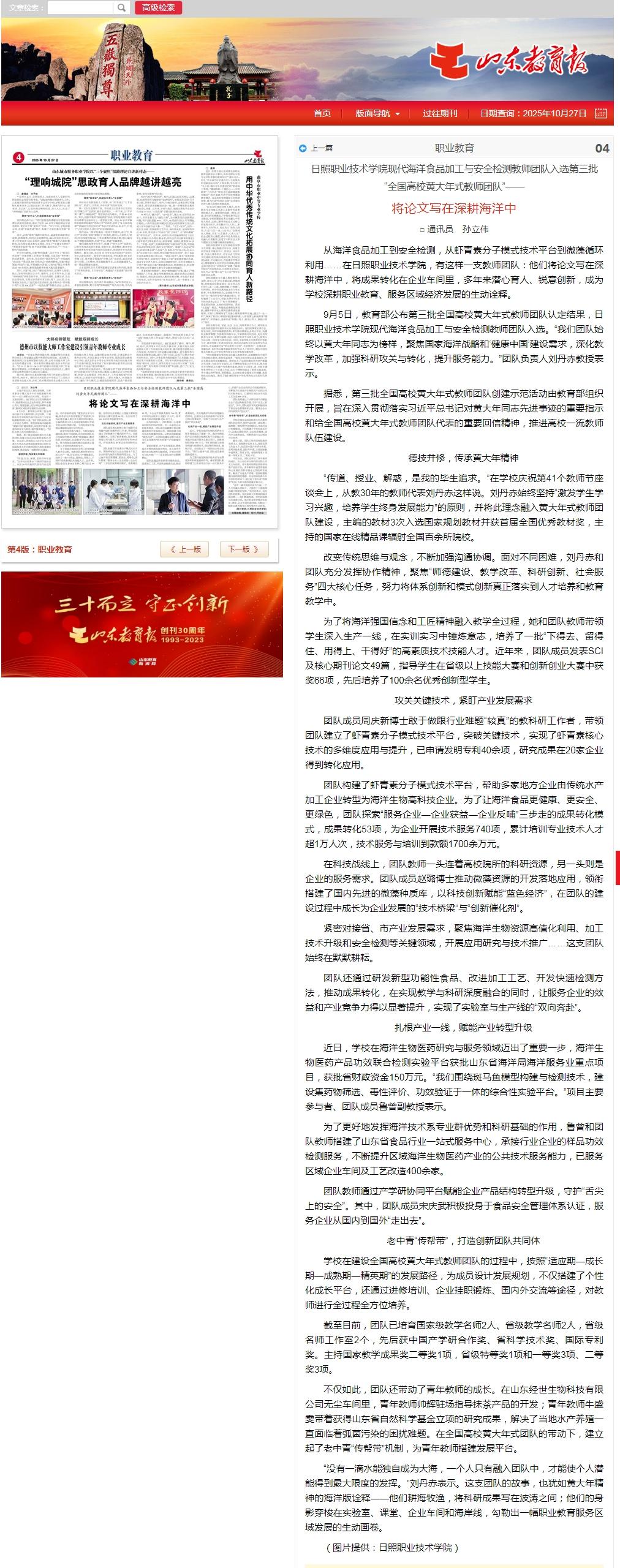 山东教育报报道:将论文写在深耕海洋中