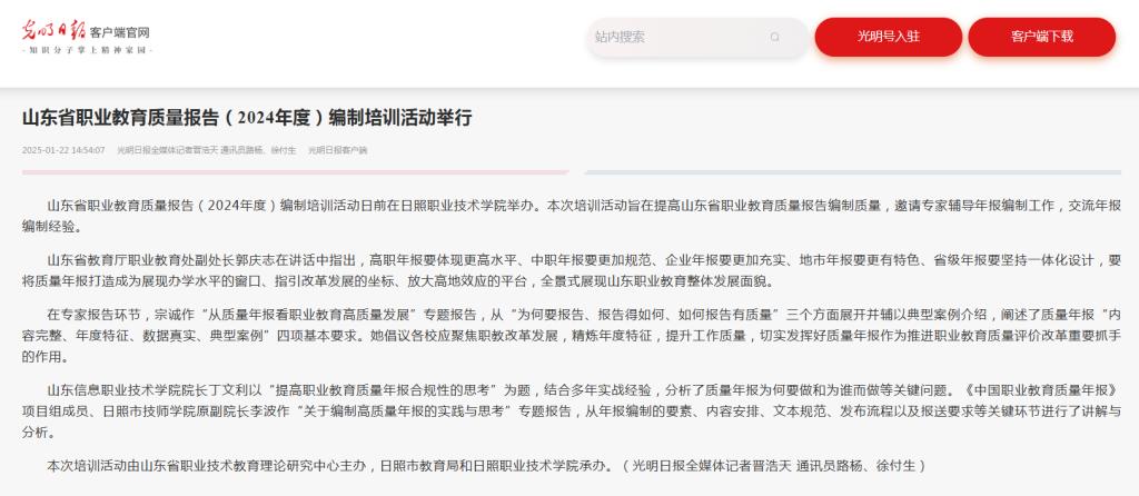 光明日报客户端报道:山东省职业教育质量报告(2024年度)编制培训活动举行