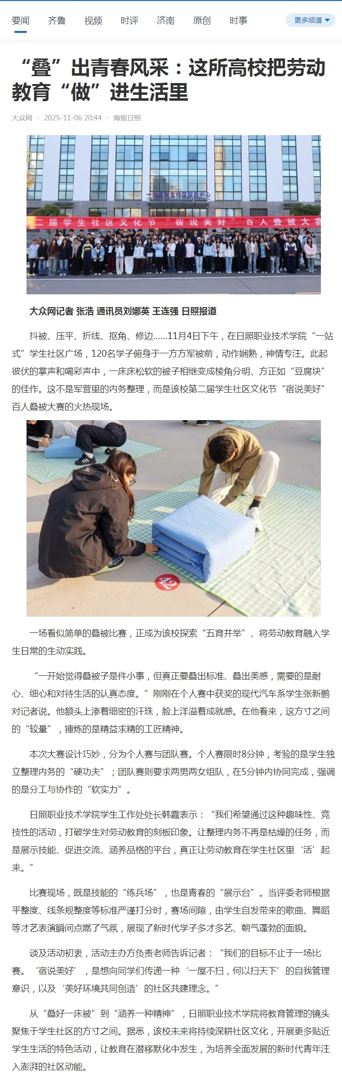 海报新闻客户端报道:“叠”出青春风采:这所高校把劳动教育“做”进生活里