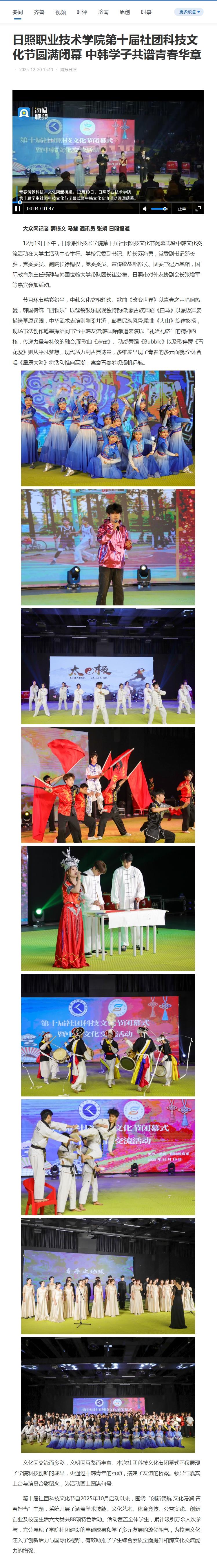 海报新闻客户端报道:日照职业技术学院第十届社团科技文化节圆满闭幕 中韩学子共谱青春华章